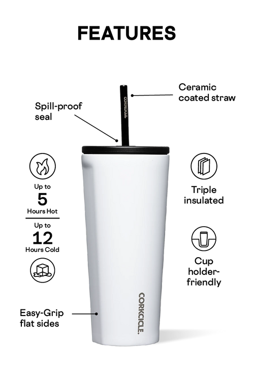 Take the workout class, tackle weekend errands, chill poolside and do it all with your new hydration buddy in tow. The Corkcicle Cold Cup features our signature triple insulation, a ceramic-coated straw, and a sleek cup holder-friendly design making it the ideal way to sip in style no matter where thirst strikes.