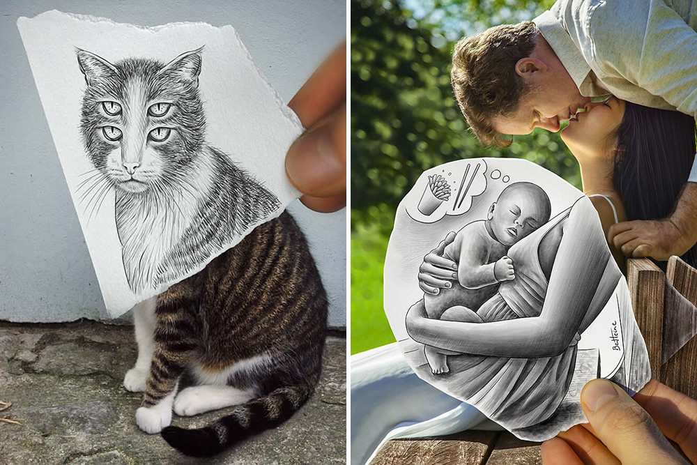Ever envisioned the fusion of photography and illustration into a single masterpiece? Ben Heine brings this imaginative blend to life with his extraordinary series, ‘Pencil Vs Camera.’ With an artistic prowess that knows no bounds, Heine seamlessly intertwines his two passions, resulting in breathtaking artworks.